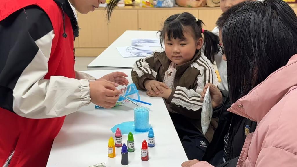 春风送暖,童心飞扬。2026年3月8日14点30分到16点30分,2138CC太阳集团心连心社团联合龙洋社区,组织举办“化学遇见色彩,童心绘就科学”主题活动,志愿者们用精心准备的趣味实验,将抽象的科学知识化作看得见、摸得着、玩得嗨的奇妙体验,在互动与欢笑中,带领孩子们近距离感受科学的魅力,点亮一颗颗充满探索欲的童心。