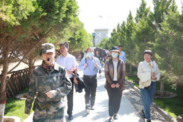 路途中,一路上看着一排排郁郁葱葱、生机勃勃的树木花草,感悟于治沙营的女子身上的“自力更生、艰苦创业,乐观向上、无私奉献,团结协作、创新进取”的治沙连精神。在营内,分工会的同志们参观了治沙博物馆,在讲解员的介绍下详细了解了几代女子民兵治沙连的党员干部们艰苦奋斗的治沙史。走出场馆,同志们看着这片土地,昔日的漫漫黄沙、满目荒凉已化作绿树成林、绿茵漫道。今日片片绿洲,是治沙连姑娘们一手一土累积一草一木相续的生命果,更是380多名女战士用汗水、泪水和智慧浇筑的精神丰碑!