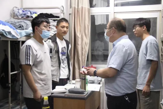 闫龙副校长与新生亲切交流,了解学生思想动态以及学习生活中遇到的困难,叮嘱同学们注意宿舍安全问题,注意身体健康,勉励同学们要珍惜大学四年时光,志存高远、脚踏实地,以积极向上的精神面貌迎接新的挑战,为实现人生理想努力奋斗。