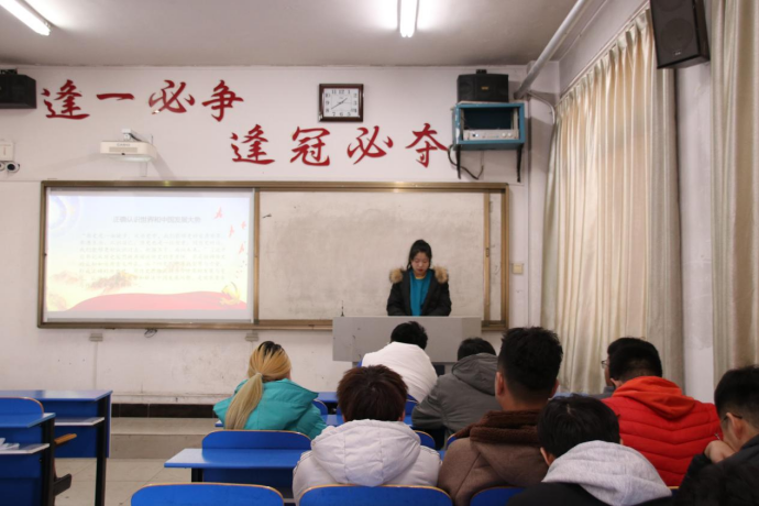 程一丹同学讲述“四个正确认识”分别是:正确认识世界和中国发展大势,正确认识中国特色和国际比较,正确认识时代责任和历史使命,正确认识远大抱负和脚踏实地。又为全体积极分子讲述当代青年的使命,我们应该秉承励志笃学,惟实尚能的校训,学好每一门课程,每一门理论,朝着自己的目标与方向不懈努力。面对各类问题与挑战时,始终保持清醒的头脑,坚定的立场,以及掌握思考的能力和足够的战略定力。实现伟大目标,进行战略抉择,不仅要有“不到长城非好汉“的进取精神,更要有”乱云飞渡仍从容“的战略定力。在青春的年华里,年轻的我们既要抬头望天,也要脚踏实地,才能走的长远,走的精彩。