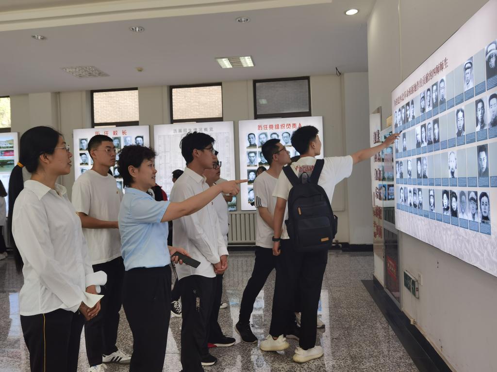 接着,在解说员的引导下,全体预备党员同志参观绥师校区校史展览。展厅内容分雕山曙光、播火西北、抗日先锋、英才摇篮、力挽狂澜、烽火岁月、艺苑奇葩、杏坛沃圃、重启远航9个板块,阐释了有着近百年光荣历史的绥师。展板以人物引出事件,以事件推动历史,讲述了李大钊的一批弟子李子洲等扎根地方传播马克思主义,组建了陕北最早的党团组织,唤醒了广大默默无闻的劳苦大众投入革命,为红军落脚和出发奠定了深厚基础,为中国革命做出了牺牲和贡献。