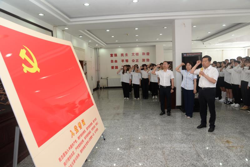 首先,党委副书记李治山带领全体预备党员同志重温入党誓词,一句句铿锵有力的誓词是誓言、是承诺、更是坚定的信念和无畏勇气的彰显。党委副书记李治山希望榆苑学子能够向前辈学习,把共产主义的火种接续传播,铭记奋斗历程,担当历史使命,在新时代创造更加骄人的成绩。