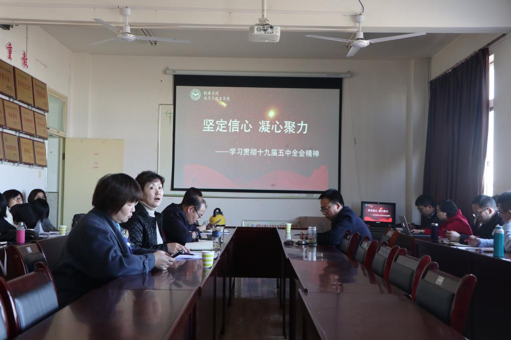 刘晓英书记表示,全院上下要充分认识党的十九届五中全会的重大意义,把学习宣传贯彻全会精神作为当前和今后一个时期的重要政治任务,推动学习宣传全覆盖,吃透精神实质、领会丰富内涵、把握核心要义,将党的十九届五中全会精神与化工学院在新时代的使命任务、各项办学事业紧密结合,深刻总结、认真梳理我院“十三五”期间在学科建设、人才培养、师资队伍、太阳集团等方面取得的成就与不足,准确把握规划编制总体要求,科学制定“十四五”规划,推动学院内涵式建设、快速高质量发展。