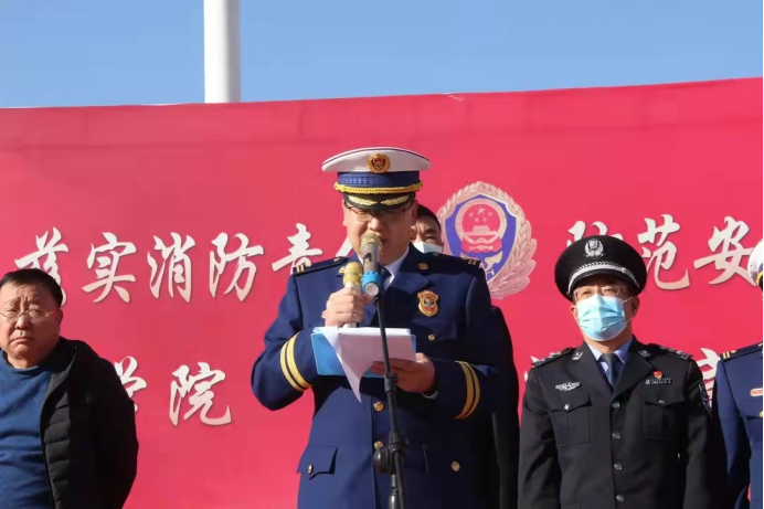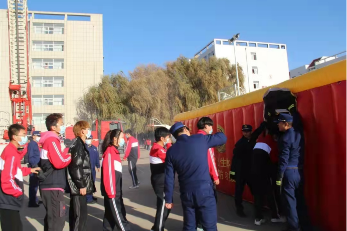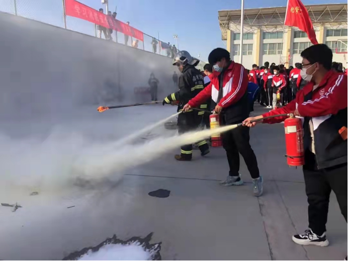 为了增强学校师生消防安全意识,提高学生对火灾的应急扑救处置能力,我校于11月13日下午14时在篮球场举行2021年消防灭火与应急疏散演习,特别邀请榆林市榆阳区消防大队大队长李应良、教导员刘腾,以及部分队员进行示范指导。