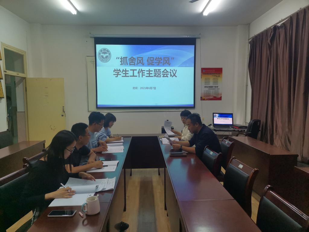 为营造优良的育人环境,培养学生良好学习生活习惯,更好发挥舍风、学风建设在学生成长成才中的核心作用,6月7日上午,我院于4502会议室召开了“抓舍风促学风”学生管理工作安排部署会议,围绕学院人才培养目标,进一步推进辅导员、班主任工作制度化、规范化、科学化,不断推进我院舍风、学风建设。我院党总支副书记王金鹏、全体辅导员出席本次会议。