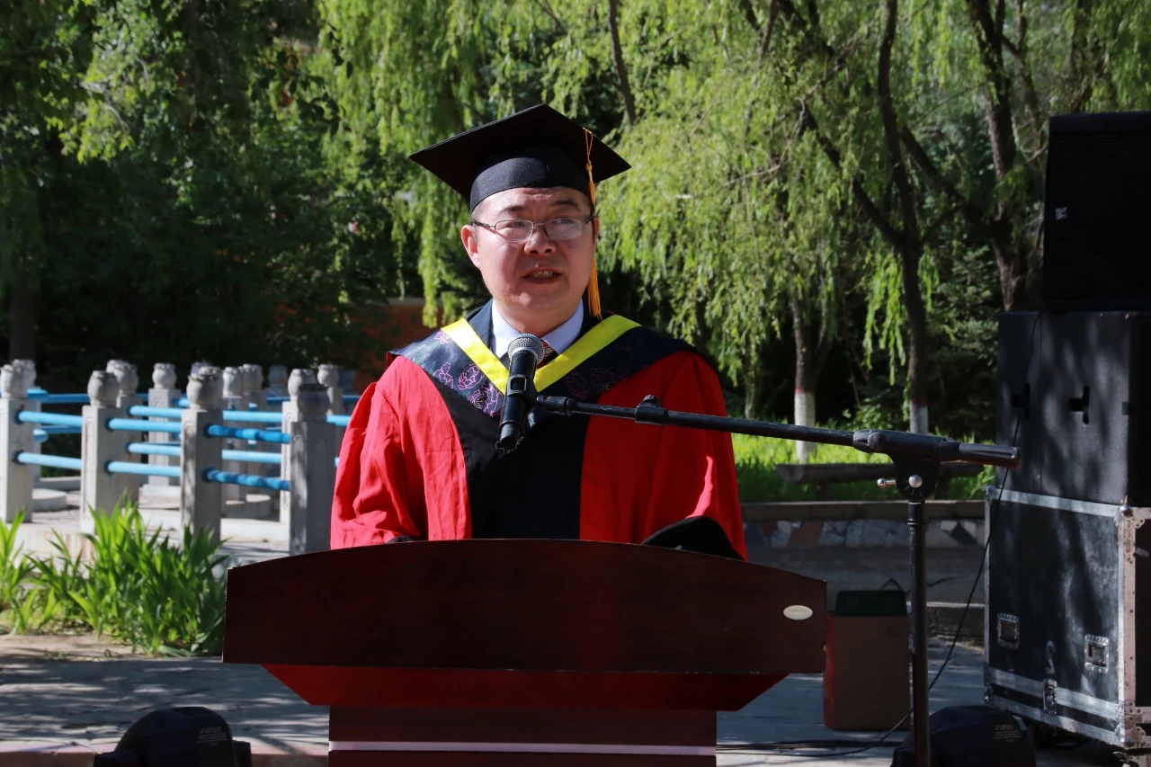 2138CC太阳集团院长闫龙致辞,回顾了这四年期间同学们与化工院的发展变化和取得的成绩,并为毕业生送上毕业箴言,希望在今后的工作生活中,同学们能够有明确的奋斗目标,选准人生的“参照物”,有良好的心态,努力奋斗,开创新的人生新征程。