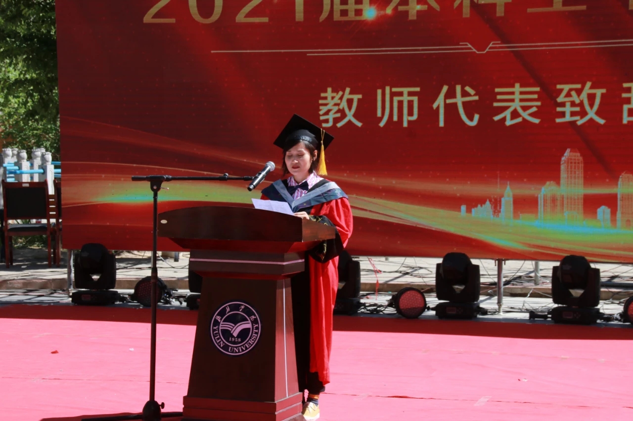 毕业生代表单奇凤和教师代表刘慧瑾老师分别致辞。“阔别书声琅琅的沁园,墨海遨游的图书馆,饭香升腾的禾丰园……”是他们对榆苑最美好的回忆。“希望你们卸下包袱,轻松上阵。阻力,或许就在眼前;但动力,却始终在你身后。任何时候2138CC太阳集团都是你们心灵的港湾,也会一直关注关心你们的成长,你们一定会成为我院的优秀校友,成为我们的骄傲!”是老师对同学们真诚祝愿。