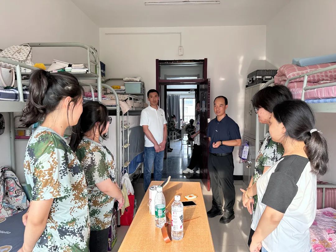 在走访过程中,校领导与老师们亲切地询问了新生们的入学感受、生活需求以及对未来的期望与规划。他们耐心倾听新生的心声,解答他们的疑惑,分享自己的大学生活经验,让新生们感受到了来自学校的温暖与关怀。同时,团总支学生会成员也积极参与其中,协助老师们进行宿舍安全隐患的排查工作,确保每一位新生的住宿环境都达到安全标准。