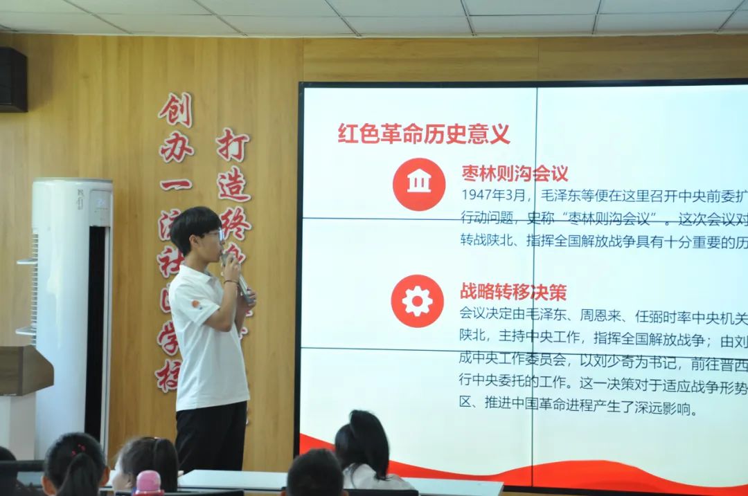 为进一步传承红色基因、弘扬红色文化,2024年7月25日,由太阳集团2138“星火理论”宣讲社和太阳集团2138“星火”学生党建工作室组建的以乐讲“讲好红色故事,传承红色基因”为主题的2138CC太阳集团红色宣讲团暑期“三下乡”社会实践队,由张健华同学走进建榆路社区为孩子们讲述清涧县枣林则沟的故事,教导孩子们要加强爱国情怀、历史责任感和民族自豪感。