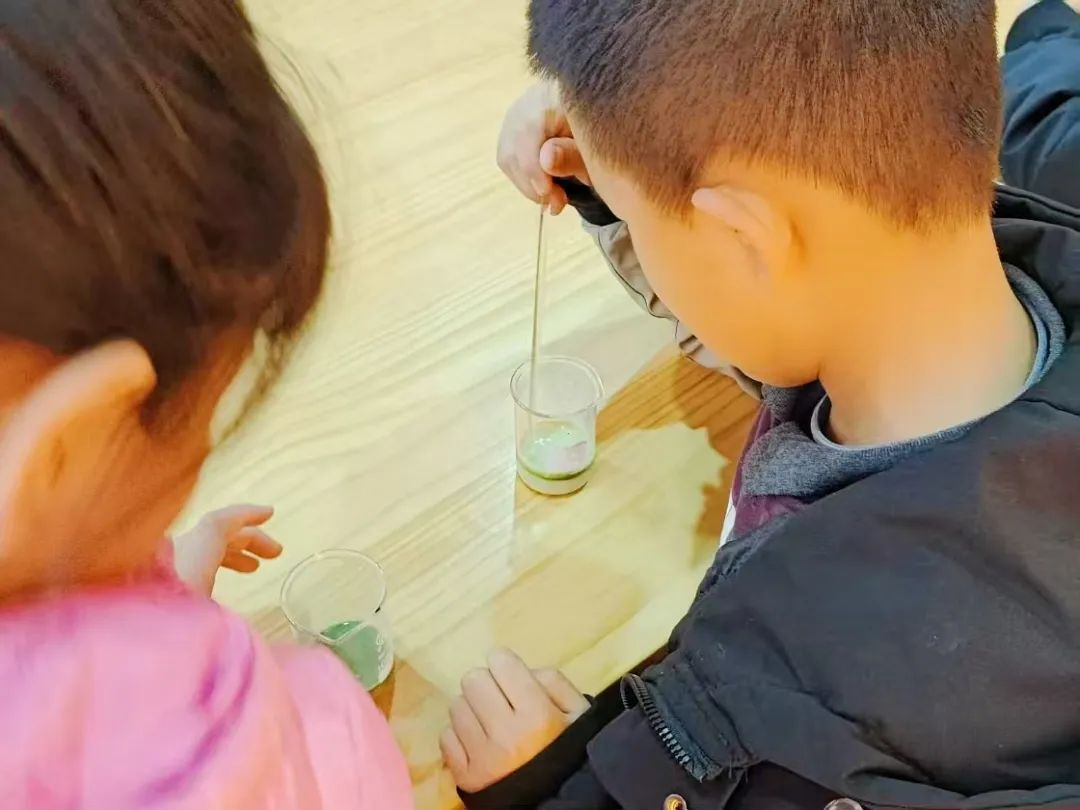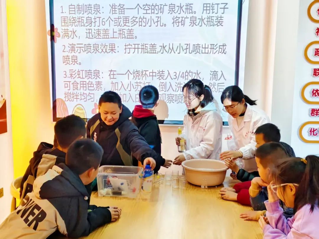 心连心社团的大学生志愿者变身科学魔法师,将化学的奥秘编织成童趣盎然的探索之旅。他们巧妙策划了“彩虹牛奶”、“自制喷泉”等兼具安全性与趣味性的创意实验,引导孩子们亲手搅拌彩虹、观察物质嬗变。当小苏打与白醋碰撞出欢腾的气泡,抽象的科学原理化作指尖跃动的魔法,为童真的眼眸点亮了通往微观宇宙的星光隧道。
