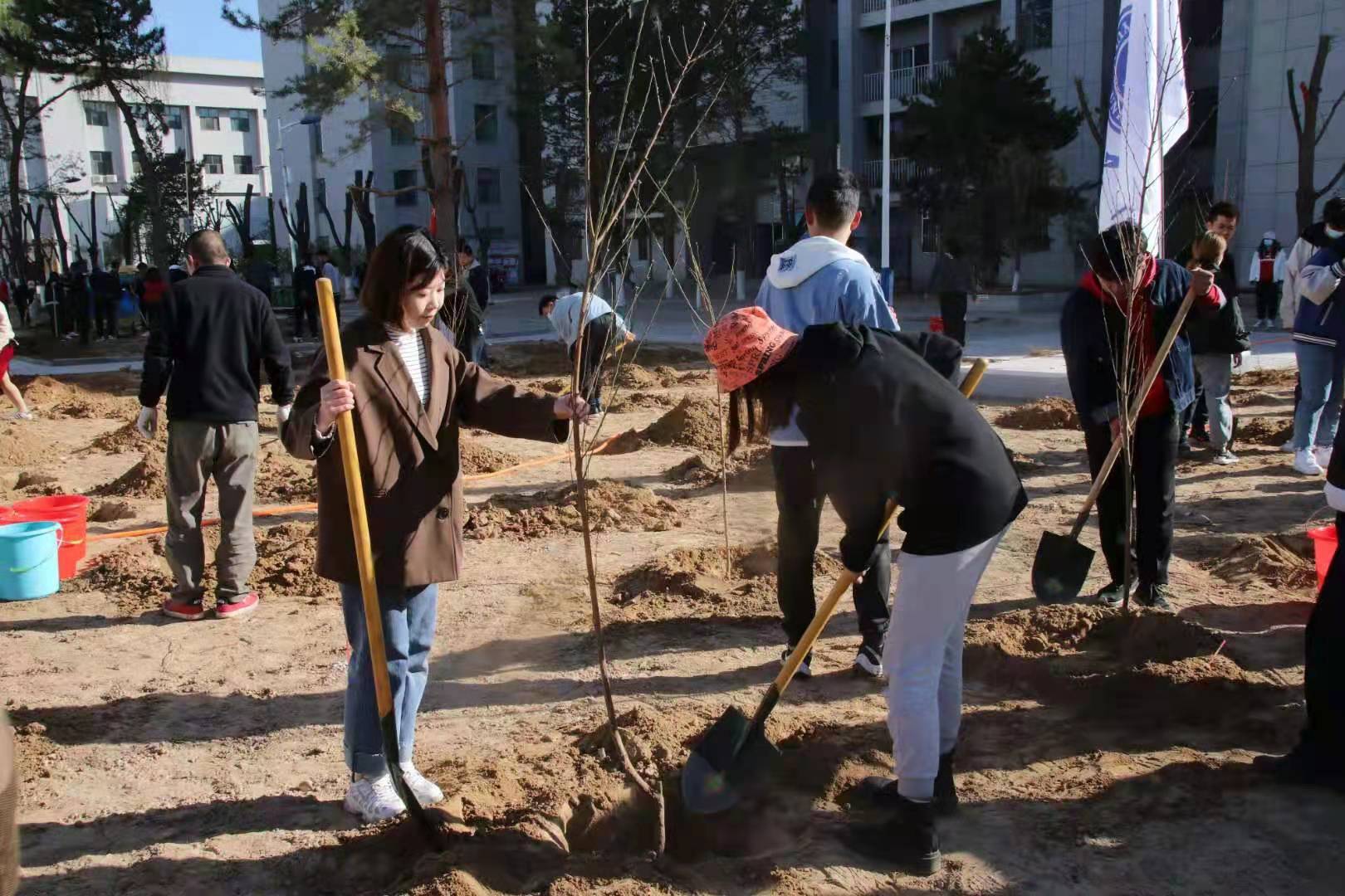 为巩固提升国家森林城市建设成果,加快推进黄土高原生态文明示范区建设步伐,让我院师生更好更方便地参与国土绿化,树立植绿、爱绿、护绿新风尚,4月17日上午,我院领导老师带领师生志愿者们在1号教学楼后方空地上进行了植树活动。