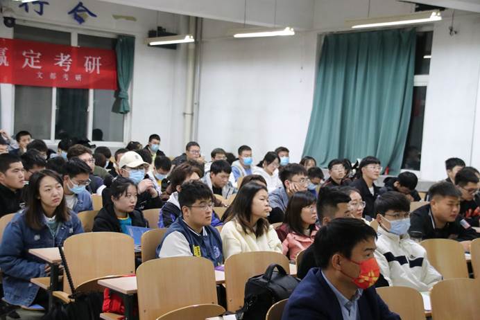 在会议的最后,石老师鼓励全体同学在考研路上遇到压力与自己消极心理状况时要及时的疏通与自我调节,也一定要注意劳逸结合适当运动,坚持自我,摒弃犹豫,坚定目标,相信自我,披荆斩棘。