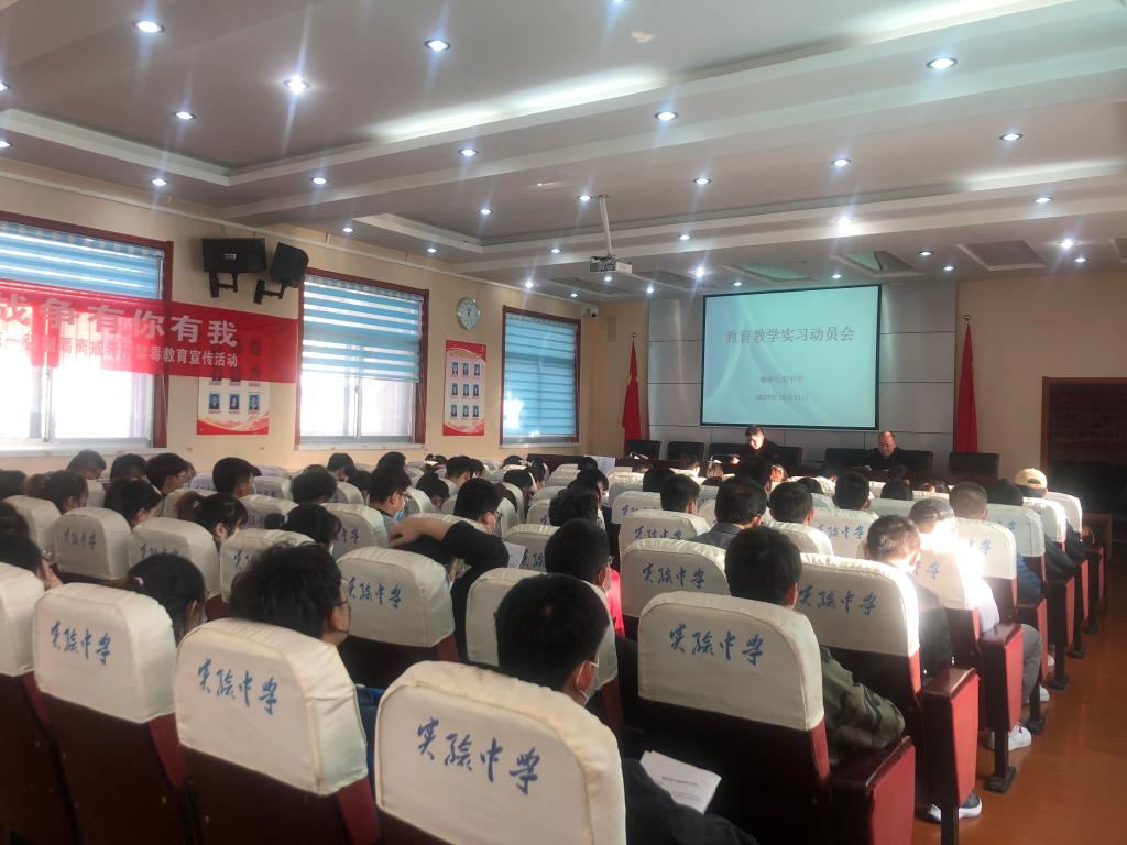 在实验开始前,榆林市实验中学为2138CC太阳集团学子召开了实习动员大会,大会由榆林市实验中学教务主任王子茂主持,参会的有13位校内外实习指导教师及71位实习生。