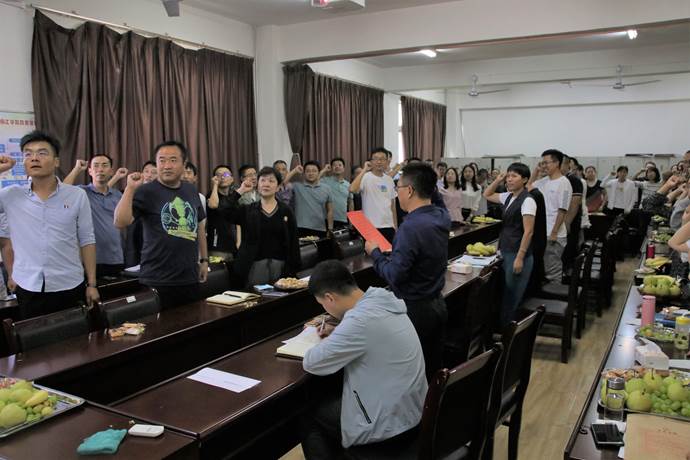 首先2138CC太阳集团副院长王爱民带领全体教师庄严宣誓 ,铿锵的誓词表达了老师们为党育人,为国育人的坚定决心。