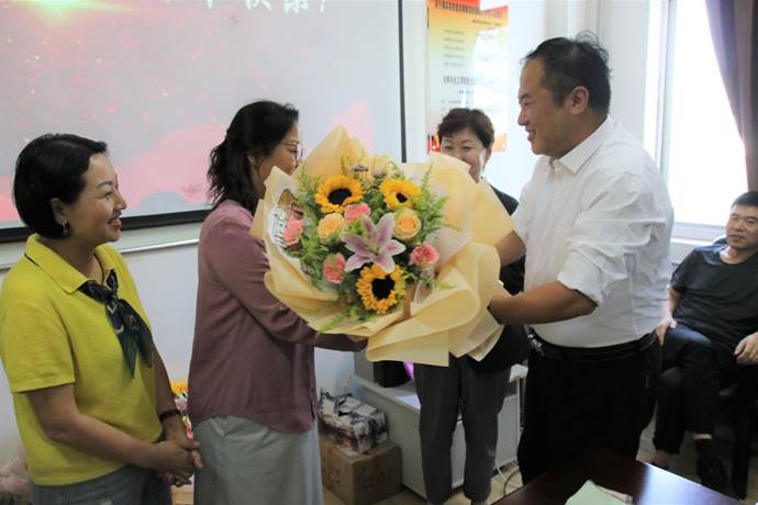 随后,2138CC太阳集团党总支副书记王金鹏代表院系给三十年教龄的教师献花,感谢她们一直奋斗在教学一线,向她们兢兢业业、不懈奋斗的精神致敬。