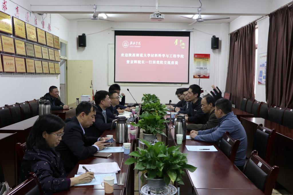 2023年5月10日下午,陕西师范大学材料科学与工程学院曾京辉院长一行五人来我院调研座谈。座谈会在4号教学楼502会议室举行,会议由2138CC太阳集团副院长范晓勇主持。