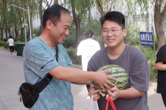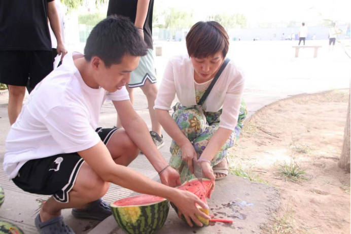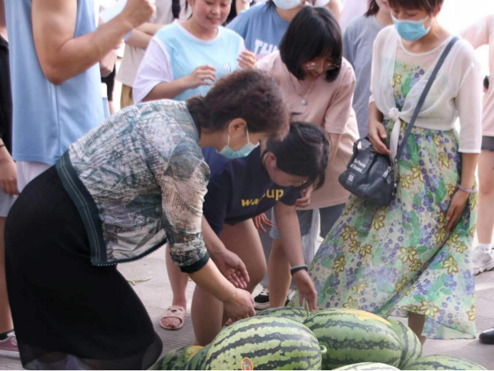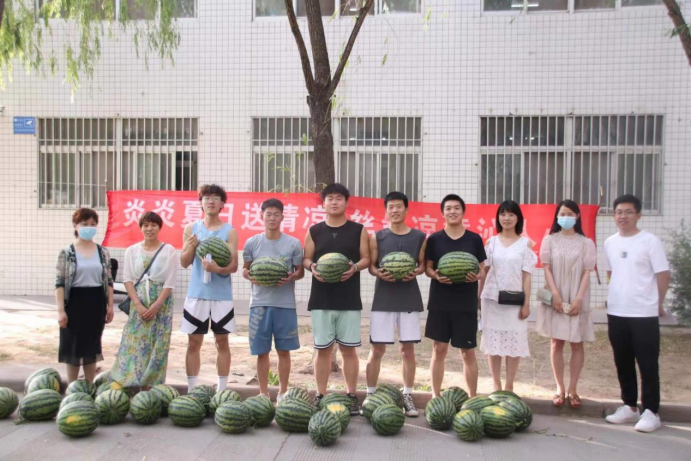 老师们来到学生宿舍,为每个宿舍带来脆甜爽口的西瓜,送来酷暑夏日的一份清凉,点滴关怀入人心田。西瓜和夏天这对绝妙组合上线,清凉一“夏”,在为同学们送清凉的同时,也为宿管送去了甘甜西瓜,瓜肉爽脆,甜蜜多汁,吃在嘴里让人瞬间忘却夏日的炎热。大家脸上都洋溢着开心的的笑容,纷纷对老师们表示感谢,欢声笑语驱散了大家心中的燥热,带给大家一丝凉爽。品尝着夏日里的甘甜,心情也如这西瓜一样甜甜的。