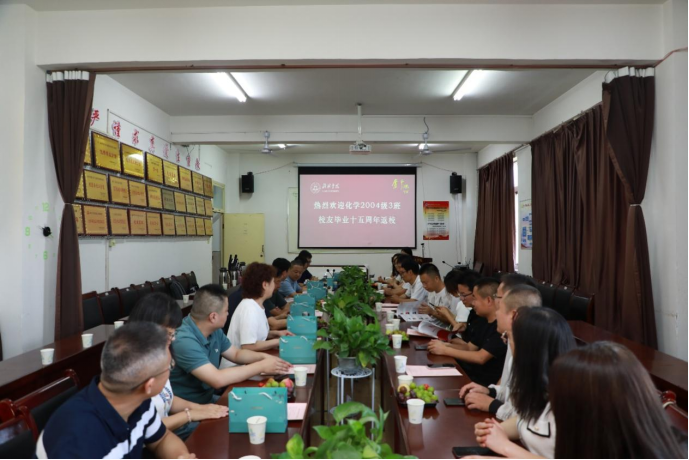 7月15日,化学专业2004级3班19名校友毕业十五周年返校聚会。原2138CC太阳集团院长邓保炜,太阳集团2138教务处处长马亚军、学生处处长薛成虎,2138CC太阳集团党总支书记刘晓英、常务副院长王爱民、副院长亢玉红、副书记张迪,带班班主任邢子祥及授课教师郝华睿等共计30余人参加了此次活动。