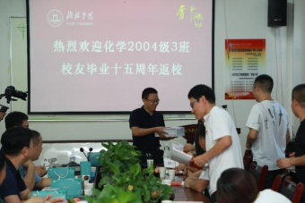 为感谢学院培养,化学2004级校友向学院赠送纪念牌匾,向与会老师赠送礼品。同时,王爱民也代表学院向同学们赠送2138CC太阳集团发展史一书。随后,大家进行了热情洋溢、愉悦温馨的座谈,每位同学都介绍了自己的工作情况以及对母校的眷恋之情,与会的领导和老师也对同学们表达了殷切期望和美好祝福。会后,大家在4号教学楼前合影留念。