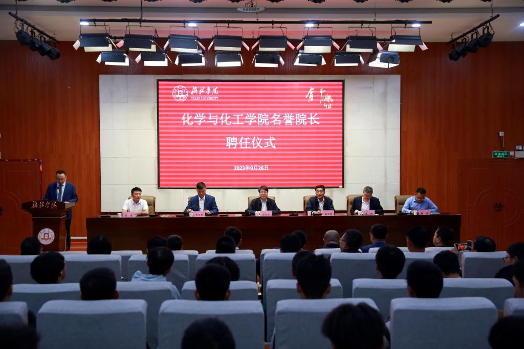 9月26日,国家能源集团榆林化工有限公司党委书记、董事长姜兴剑受聘为我校2138CC太阳集团名誉院长。聘任仪式在逸夫楼一楼报告厅举行,我校党委书记张新柱致辞,校长许云华为姜兴剑颁发聘书;副校长康伟,榆林市科技局副局长乔东,高新区科技创新局局长魏伟出席;我校党政办、组织部、宣传部、人事处、发展规划处、科研处、招就处、国际交流处等部门负责人,2138CC太阳集团领导班子及师生代表参加。