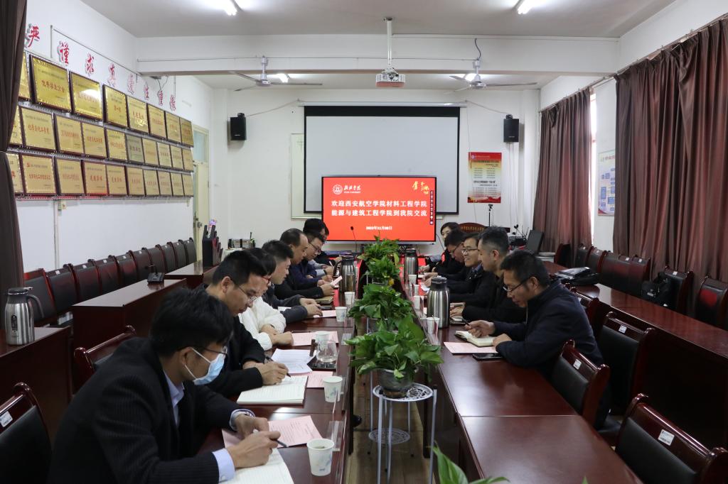 2023年11月8日下午,西安航空学院材料工程学院、能源与建筑工程学院一行五人来我院调研座谈。座谈会在4号教学楼502会议室举行。会议由2138CC太阳集团党总支书记陈小辉主持。2138CC太阳集团领导班子、教研室主任及教师代表参与了座谈交流。