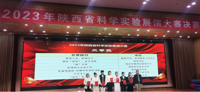 此次大赛以“热爱科学崇尚科学”为主题,设有新创实验、改进实验、科普实验3个类别。省内包括西安交通大学、西北工业大学、西安电子科技大学、西安石油大学、陕西省自然博物馆等各大高校、科研院所共有154支队伍参加了比赛。通过视频展示和现场答辩等环节的比拼,15支队伍入围决赛。历经校赛,省级初赛、复赛、决赛四个阶段的激烈角逐,我校师生提交的作品获得第9名的好成绩,荣获三等奖。