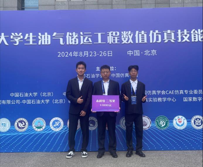 2024年8月23日至8月26日,由中国石油学会、中国仿真学会主办,中国石油大学(北京)承办的第三届全国大学生油气储运工程数值仿真技能创新大赛决赛,在中国石油大学(北京)落下帷幕。包括中国石油大学(北京)、中国石油大学(华东)、西南石油大学、东北石油大学等在内的27所高校共提交141件作品,经专家评委评审、组委会审核,共推荐60件作品晋级决赛。在油气教研室指导老师张皓宇的精心指导下,我院学子张子轩、张溢洲、刘亚东团队提交的“输气管网稳态仿真”作品成功晋级总决赛,并荣获本科组二等奖。