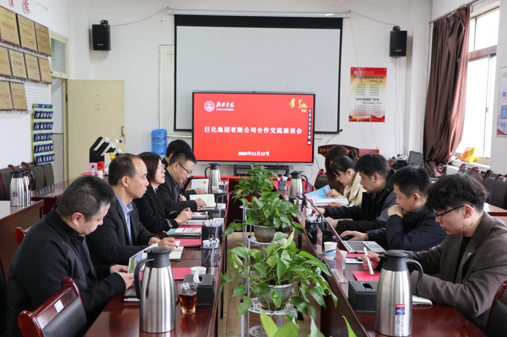 张烨对巨化集团的到来表示热烈欢迎,并介绍了学校总体发展情况、办学特色以及人才培养情况,特别详细说明了学校百年来的光辉发展历程,以及学校在支持地方产业经济发展、围绕“三文、三黄、三化”的发展特色。王涌泉介绍了巨化集团的发展历程、业务范围、技术实力及未来规划,并重点阐述了甘肃巨化新材料有限公司项目的情况,以及公司对高素质人才的需求情况。王涌泉表示,巨化集团是浙江省属国有企业,是全国最大的氟化工先进制造业基地和浙江省最大的化工基地,甘肃玉门巨化新材料有限公司项目是甘肃历史上投资规模最大的工业项目,受到中央及省市领导的高度重视。集团期待与我校建立更加紧密、深入的合作关系,共同培养行业所需的优秀人才。王爱民从2138CC太阳集团的发展历史,学院的学科专业机构、硕士点建设、师资队伍建设、实验实践平台、太阳集团和学生就业等方面详细介绍了学院的基本情况。