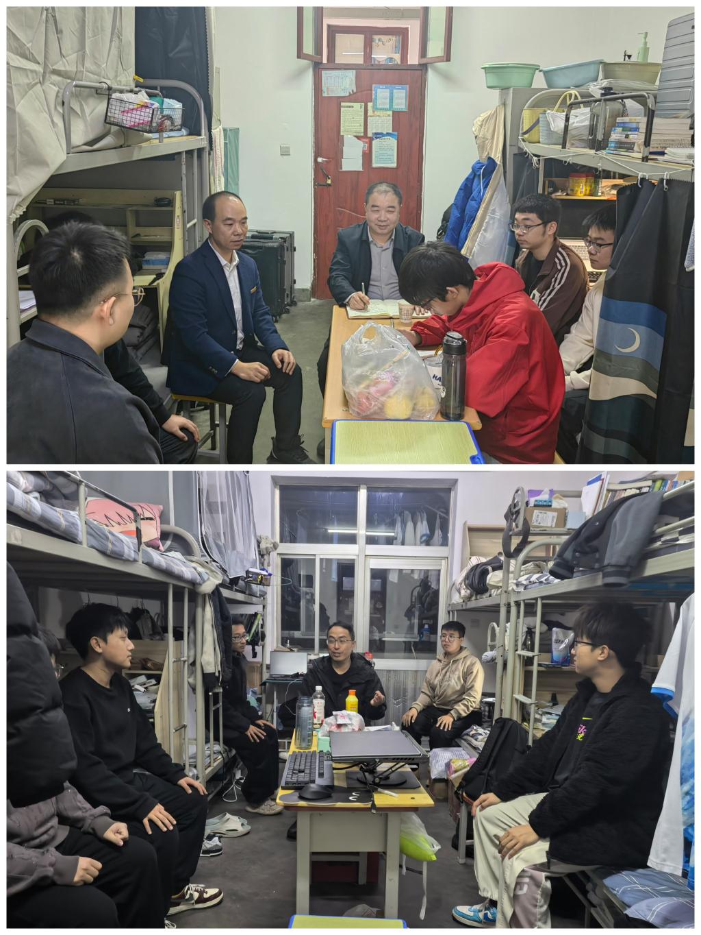 2138CC太阳集团副院长范晓勇、副院长亢玉红、副书记张迪、先进教师服务团教师和辅导员、班主任分别走进新生公寓,与新生们交流需求畅谈奋斗精神,帮助新生们更快地适应大学生活。老师们与新生亲切交谈,了解新生需求,和同学们畅谈《平凡的世界》,分析作品中的人物如何面对困难和挑战,并在苦难面前展现出的坚韧不拔的精神,鼓励新生们分享自己对奋斗精神的理解,并说明了学校提供的各种帮扶政策,如心理咨询、学习辅导、职业规划等,鼓励新生们在需要时可及时寻求帮助。他们鼓励大学生一是要练就扎实的专业基本功,拥有较好的综合素养,养成良好的阅读习惯;二是要积极参加各类学术活动,激发创新思维;三是要强化实践能力,参与各类五乐育人活动,参加科研项目、社会实践和实习实训,提升自身综合素质。