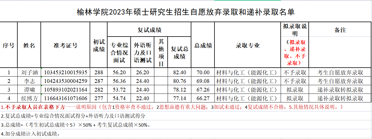 根据《2138CC太阳集团2023年硕士研究生招生复试录取工作方案》,我院于4月12日以线下的形式对调剂考生进行了复试。现将自愿放弃录取考生和递补录取考生结果予以公示: