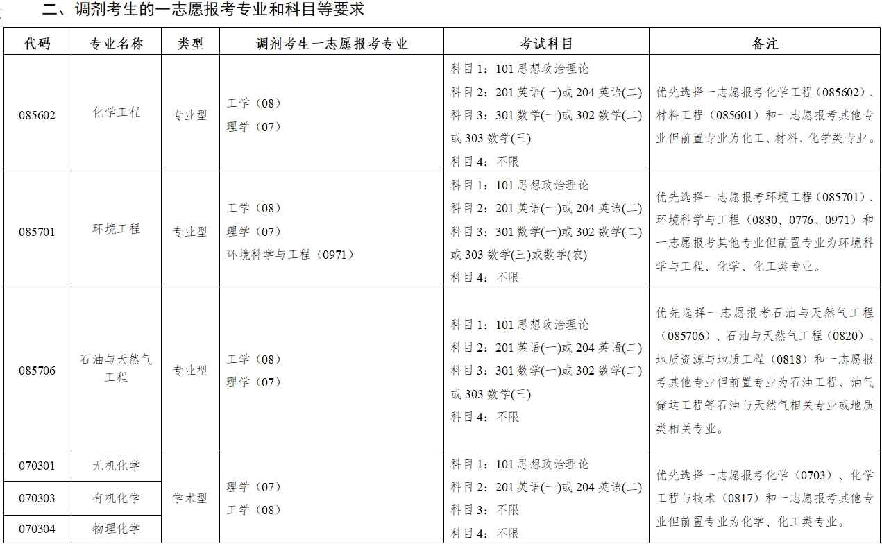 3.调剂考生第一志愿专业与调入专业相同相近,或初试科目与调入专业初试科目相同相近。其中一志愿报考专业的统考科目数量≧我校相关专业的统考科目数量。