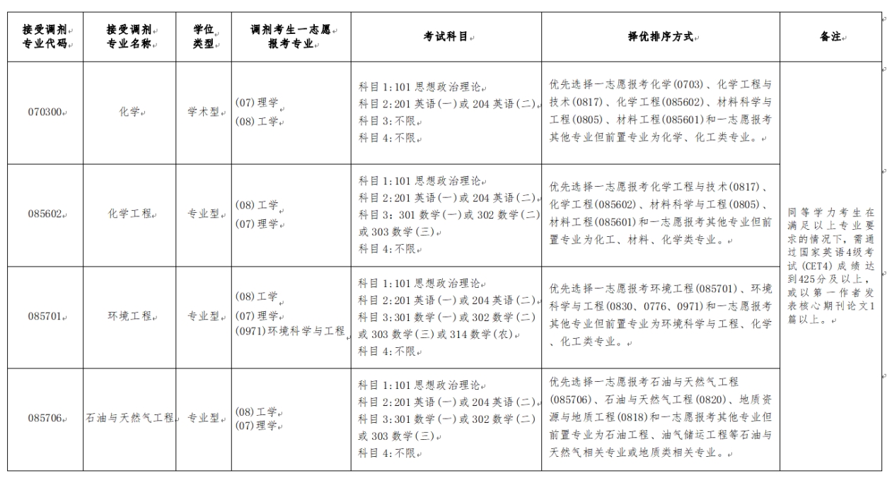 3.调剂考生第一志愿专业与调入专业相同相近,或初试科目与调入专业初试科目相同相近。其中一志愿报考专业的统考科目数量≥我校相关专业的统考科目数量。