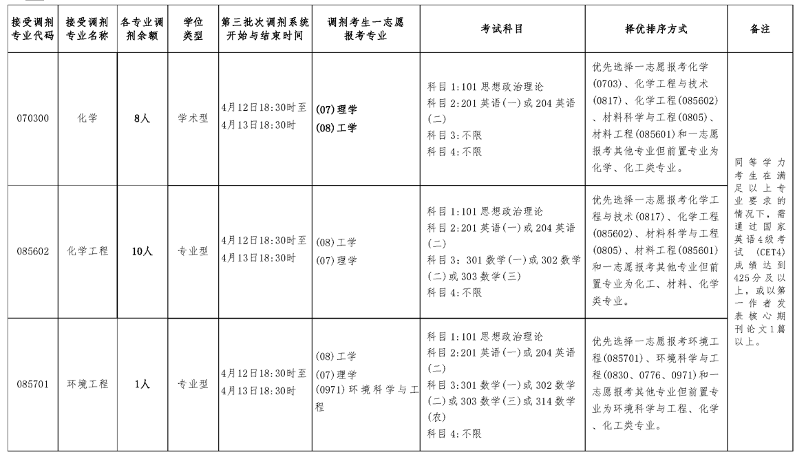3.调剂考生第一志愿专业与调入专业相同相近,或初试科目与调入专业初试科目相同相近。其中一志愿报考专业的统考科目数量≥我校相关专业的统考科目数量。