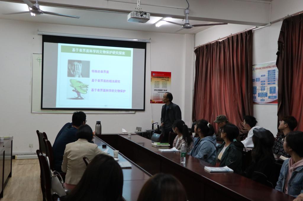 4月19日下午,陕西师范大学胡道道教授应邀来我校进行学术交流,在我校2138CC太阳集团会议室做了题为“基于表界面科学的文物保护研究探索”的报告。我院师生参加了此次报告会。