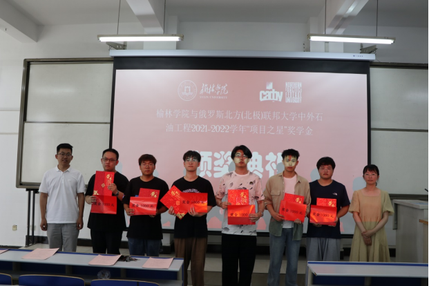 白云云老师首先介绍了到场老师并宣布表彰大会开始;然后李亚辉宣布了2021-2022学年获奖学生名单;然后分别由白老师为获得“二星”奖励的学生颁奖,吕波及代晓敏老师为获得“一星”奖励的学生颁奖并合影留念。大会第四项由获奖学生代表朱珠赵曌和刘艺清同学做获奖感言,交流了过去的两年里自己的学习经验及感想。会议第五项由中外石油项目办秘书李亚辉为同学们解读了中外石油项目之星奖励办法(试行),详细说明了项目之星获奖条件及奖励标准;最后由化学与化工院党总支秘书老师作总结发言,鼓励同学们认真学习,发扬创新精神,积极参加课外活动;在大学期间做到不负青春,不留遗憾。