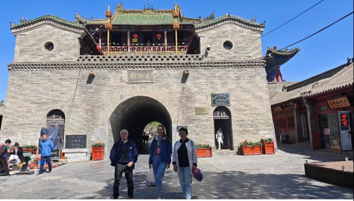 最后,外教一行来到榆林古街,榆林古城,东依驼山,南凭榆阳河,西临榆溪,北踞红山。明成化年间,延绥镇巡抚余子俊将镇治所由绥德迁至榆林卫以后,曾多次修建。文昌阁、万佛楼、星明楼、钟楼、凯歌楼、鼓楼,由南至北纵列排开,形成独树一帜的“六楼骑街”历史风貌。