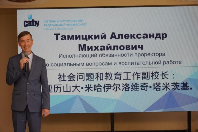 北方(北极)联邦大学负责社会问题与教学工作副校长亚历山大·米哈伊尔洛维奇·塔米茨基---我们非常高兴在北方(北极)联邦大学见到大家,欢迎你们。大家即将在这里开始学业,结交新的朋友,祝愿大家学业上取得成功,了解和享受俄罗斯文化。北方(北极)联邦大学的国际合作处处长柳博夫·阿尔贝托夫娜·扎鲁比纳强调:3年间各方付出了很多努力和付出,今天迎来了与同学们面对面的在北方(北极)联邦大学座谈办学成果。