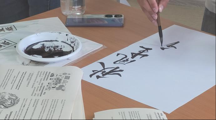 随后,武玄同学选择了与“秋”有关的诗词并以书法的形式展示给了大家,在武玄同学的邀请下,不少俄罗斯学生提笔尝试了书法,并对中国文化的博大精深赞叹不已。