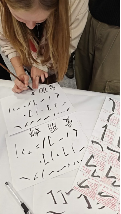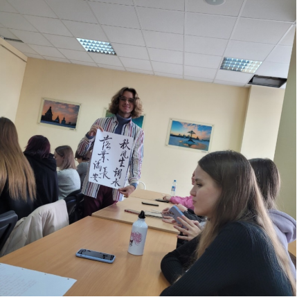 10月19日,赴俄学生武玄同学受邀前往北极联邦大学图书馆举办“书法大师班”现场教授书法。在九月份的活动中,俄罗斯学生对于书法表现出了极大的兴趣,因此,中俄学生联盟社团再次邀请了武玄同学单独开设书法大师班并进行现场指导教学,活动现场书法区前甚至排起了队。