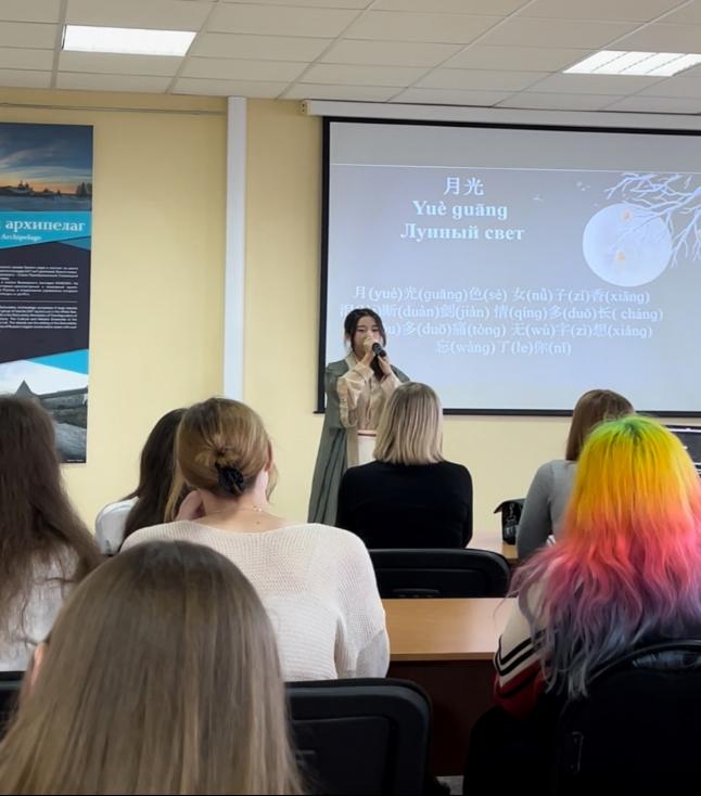 项目学生利用参加活动的机会,积极宣传中国博大精深的中国文化,展现当代中国青年学子的风采。2024年9月30日中午,我专业赴俄学生受邀参加罗蒙诺索夫北方(北极)联邦大学中俄学生联盟社团举办的《中国秋天之旅》主题讲座主题讲座,其中武玄、朱珠赵曌同学围绕中国特色内容进行了表演展示。